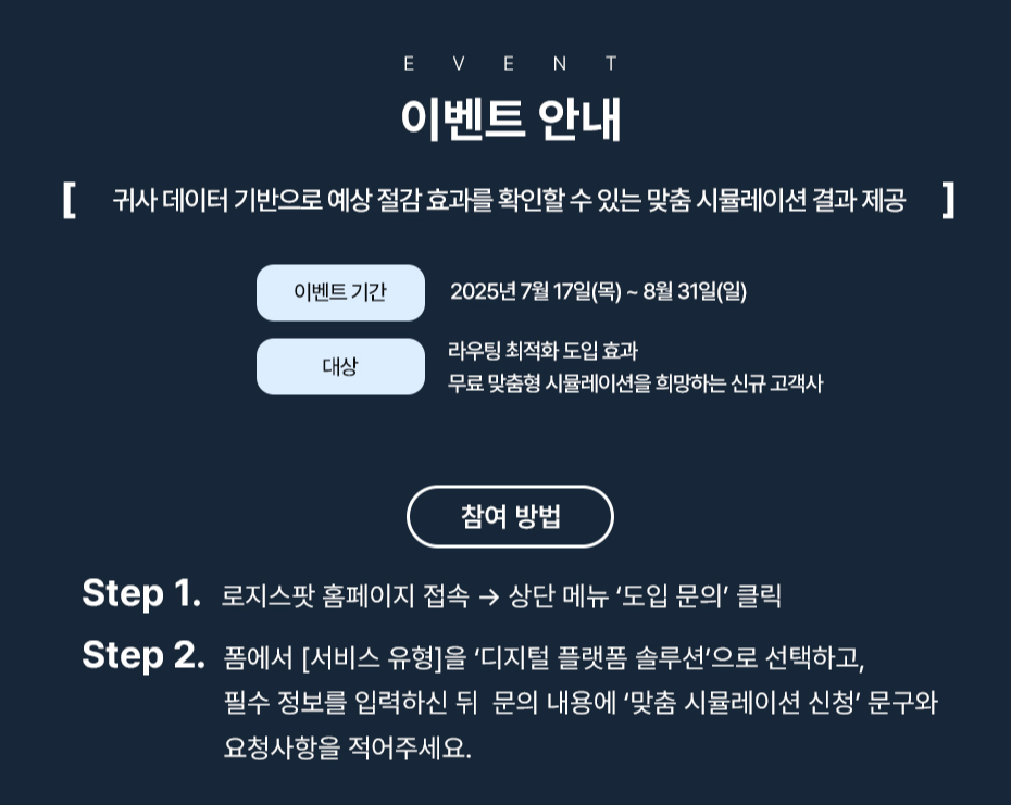 이번 AI 라우팅 최적화 출시를 기념해, 로지스팟은 특정 조건의 시뮬레이션 데이터를 기반으로 월 운송비 절감, 탄소 배출량 감소, 배차 효율화 등